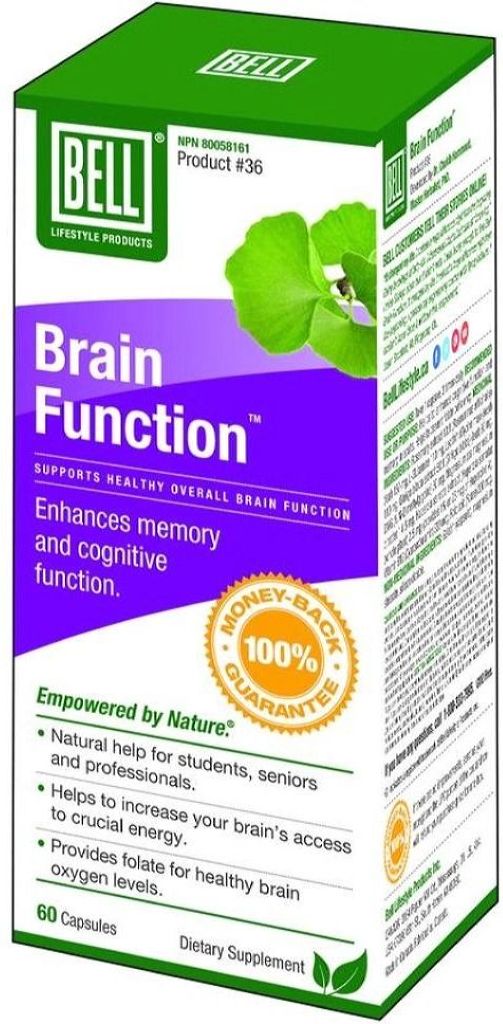 Bell Lifestyle - Brain Function - 60 Capsule(s) - NPN: 80058161 -- Made with the best ingredients. Combines rosemary extract, ginkgo biloba extract, L-glutamine, lecithin, magnesium, DMG, huperzine extract, vitamin B12 and folic acid (folate) to create a rich brain-nourishing formulation. When it comes to carving out a life marked by success you need your brain to do more than just get by. You need optimal performance. When your brain is functioning at its best, you feel like you can do just about anything. When you lack optimal brain function, it can feel like the world is crashing down around you. As your brain fails you, your confidence goes as well. You wonder if you'll ever be able to do the things you used to take for granted. Let alone meet daily challenges. Your brain is on fire literally. It is one of the hottest spots in your body. It burns through more calories each day than any other part of your body. To keep humming, it constantly sucks up nutrients turning them into brain material neurons, the fatty case that shields them and neurotransmitters. Bell Brain Function formula gives you nutrition to improve brain function well into the future. Safe and effective for any age, it gives your brain the optimal amounts of key nutrients it needs to run at its best. Help improve your brain function today