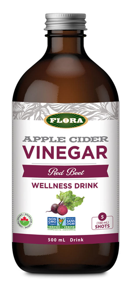 Flora - Apple Cider Vinegar - 500 Millilitre(s) - NPN: 00000000 -- Enjoy the crisp tang of apple cider vinegar combined with the sweet and earthy flavour of red beets. Thoughtfully brewed in small batches, freshly ground organic herbs are water-extracted overnight, then blended with organic apple cider vinegar and infused with organic red beet crystals. Floras Red Beet Apple Cider Vinegar is bottled immediately after blending to capture optimum freshness. Floras Red Beet Apple Cider Vinegar will rejuvenate your body and enliven your senses.