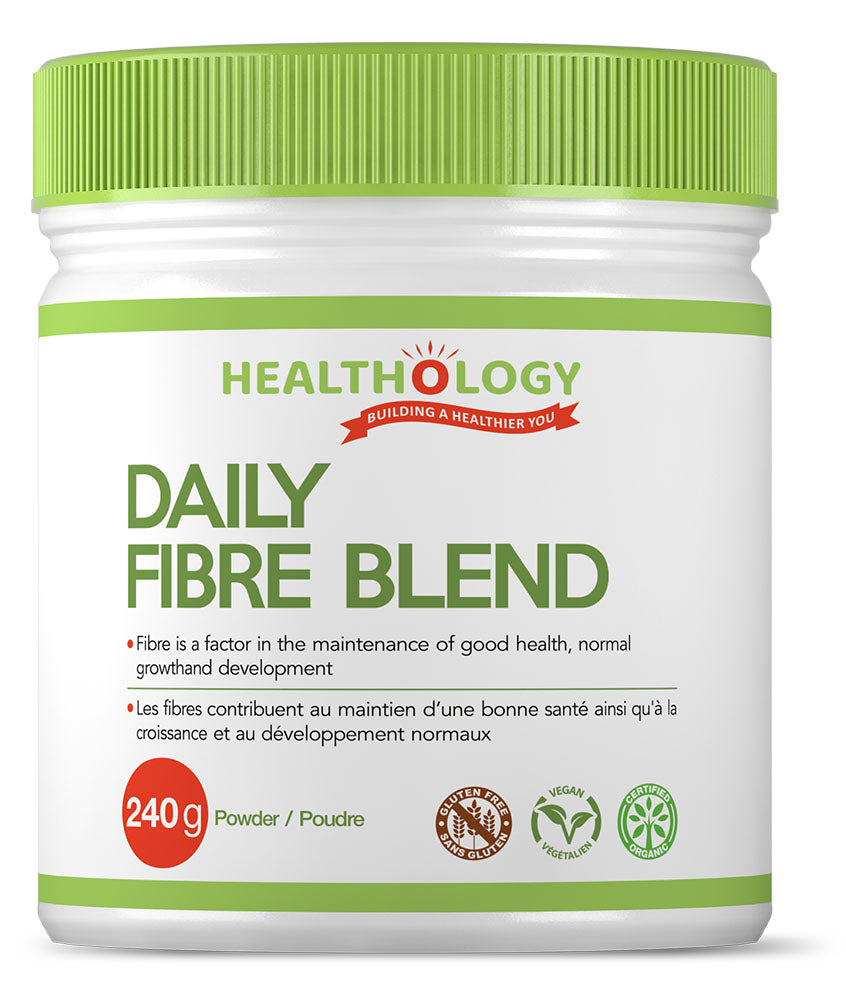 Healthology's Daily Fibre Blend contains 3g of Fibre per serving from certified organic, Non-GMO blend of flax seeds, chia seeds and quinoa seeds. Fibre helps to promote healthy digestion, bowel health and regularity and is often used to help maintain weight. Healthology formulated Daily Fibre Blend in an easy to consume powder format that can be easily added to meals and snacks and contains no added artificial sweeteners, colours, sugars or additives and is very gentle on the digestive tract.