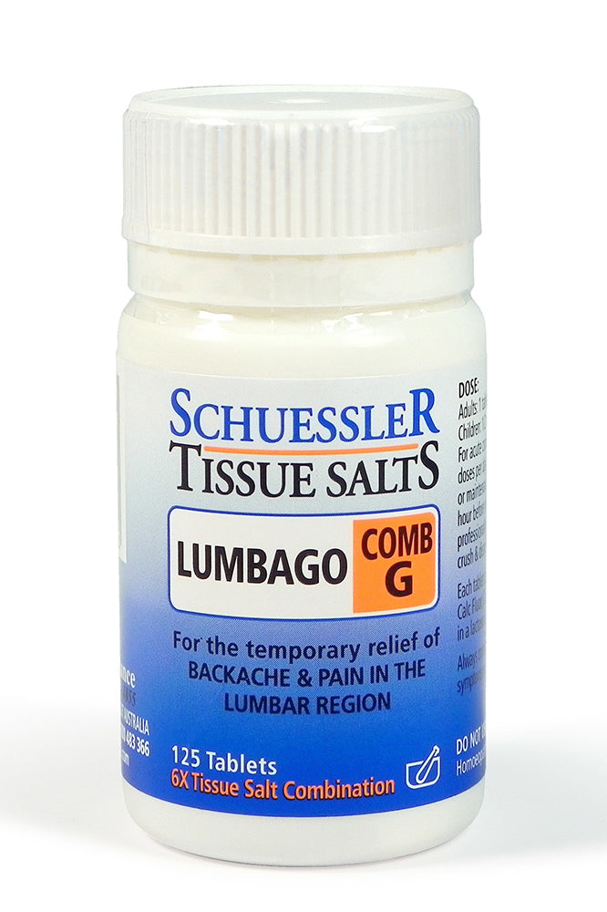 MARTIN & PLEASANCE - Comb G (6X) Lumbago - 125 Tablet(s) - NPN: 80022317 -- Calc fluor (Calcium fluoride), Calc phos (Calcium phosphate), Kali phos (Potassium phosphate), Nat mur (Sodium chloride)